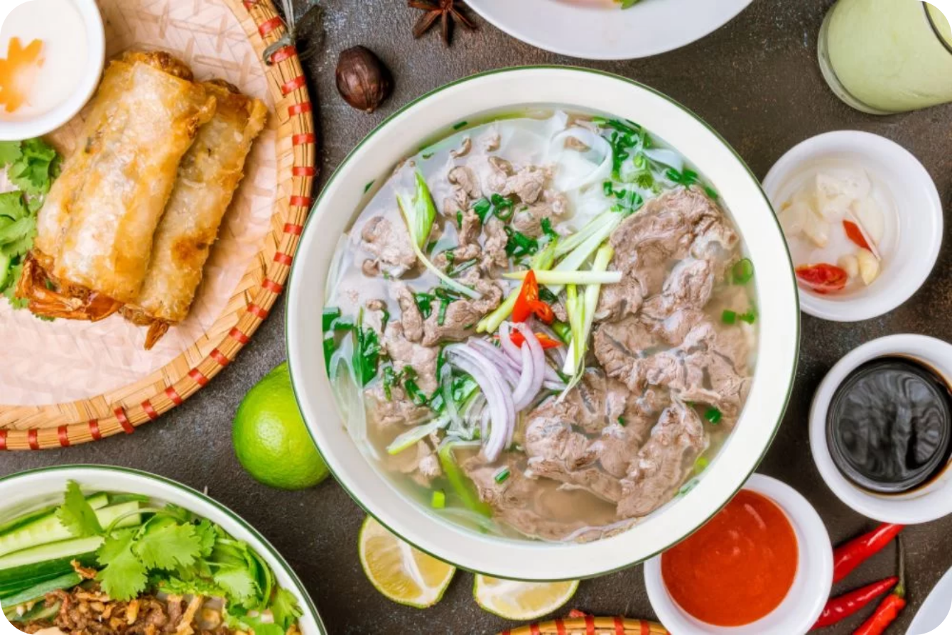 The world-famous Vietnamese noodle soup “Pho” at Huong’s Kitchen has the most organic taste.